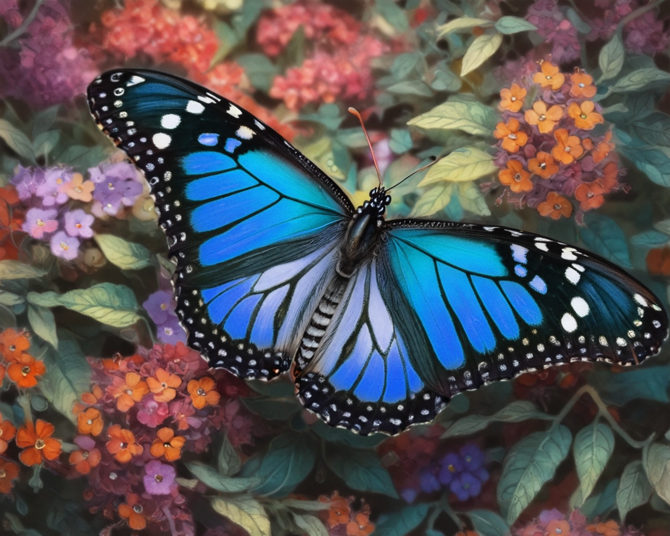 Pintar por Números – Mariposa azul sobre flores de colores