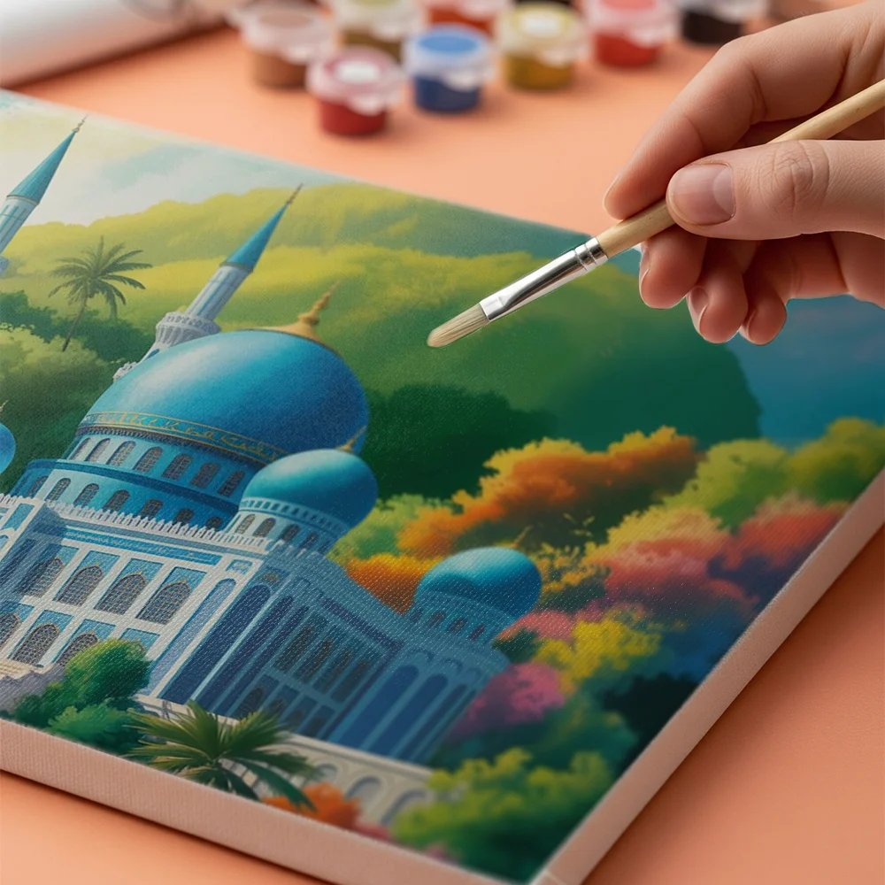 ¿Busca una salida para toda su creatividad, una actividad divertida para toda la familia? Esto es posible con el brillante, completo y profesional paquete de Pintar por Números – Mezquita en el Paraíso. Para que puedas crear los más bellos cuadros en casa. El lienzo transparente de alta calidad le permite crear una obra de arte impresionante en poco tiempo. Deje que su interior brille con sus propias creaciones. Pintar por números es el pasatiempo perfecto para ti solo o para toda la familia.