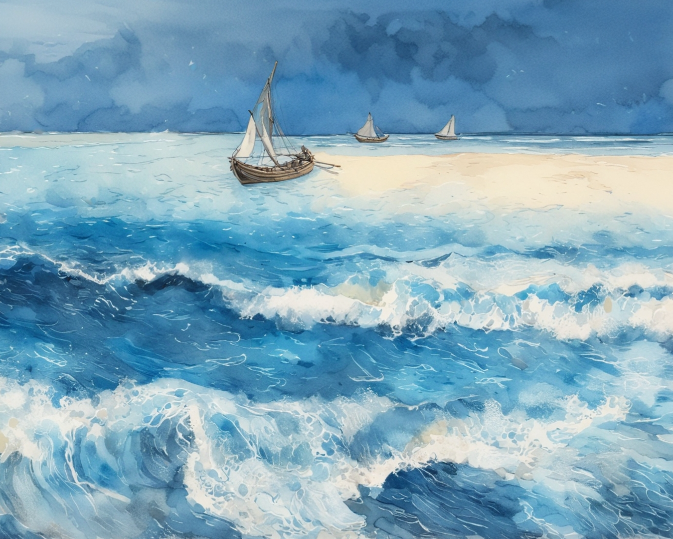• Pintar por Números – Navegando sobre las olas azul celeste