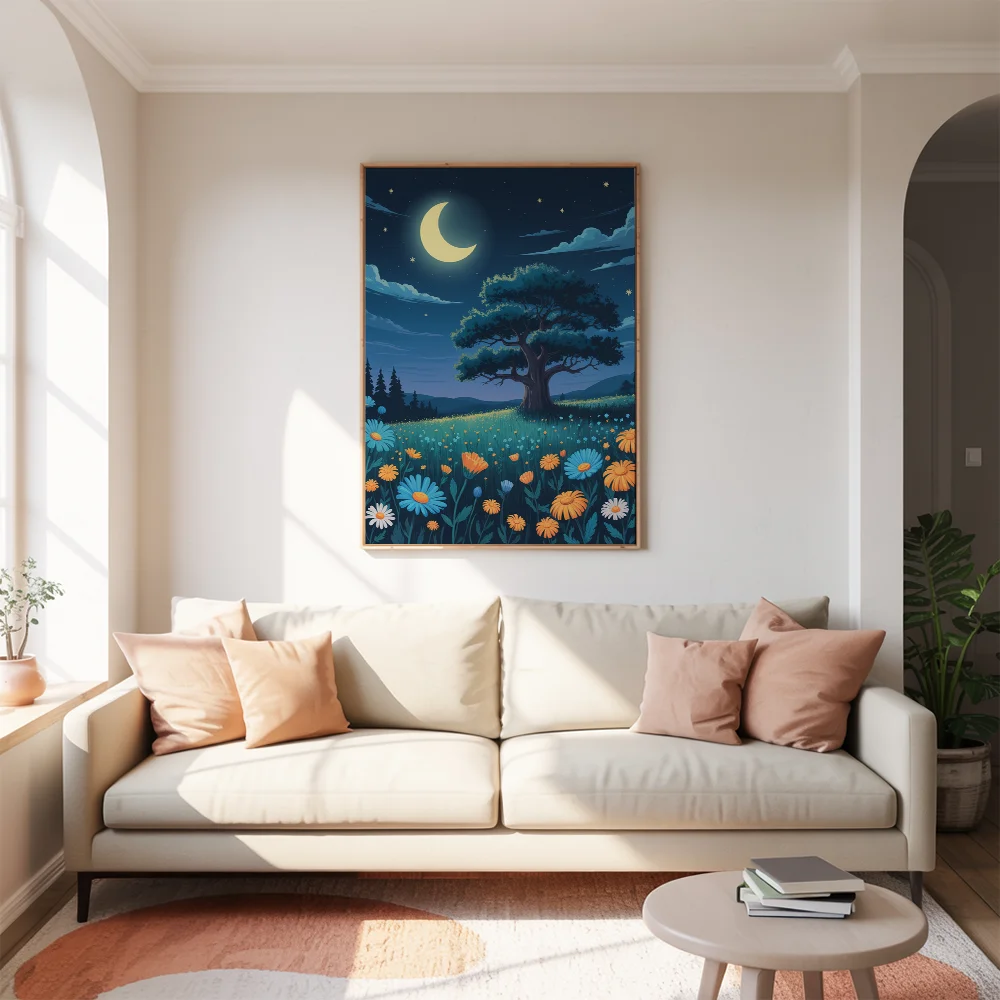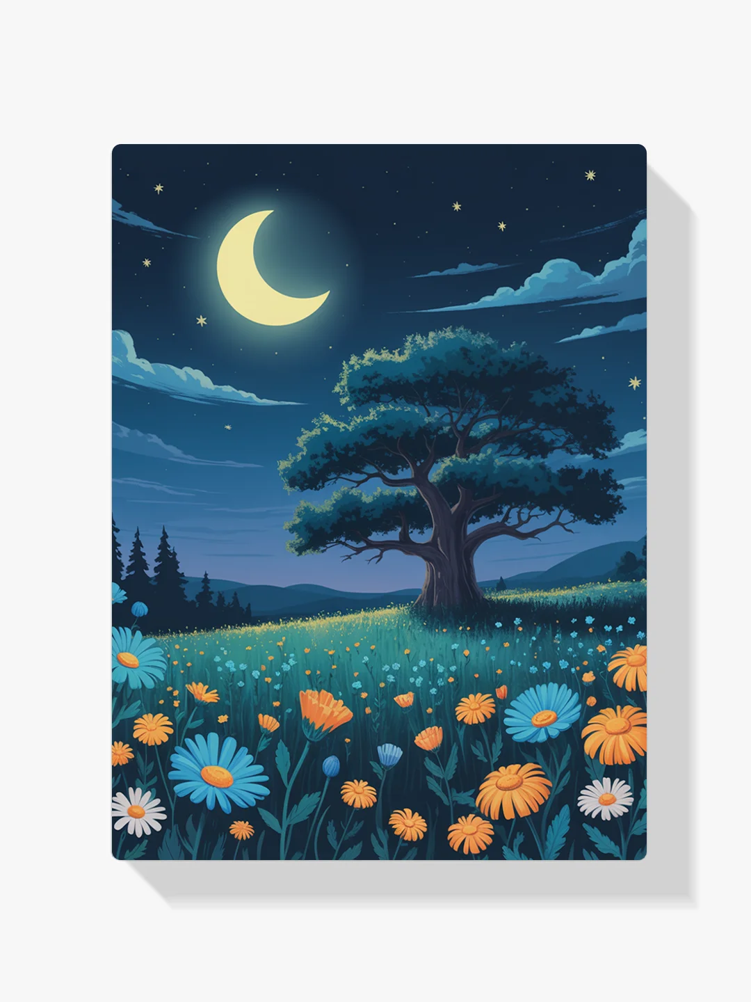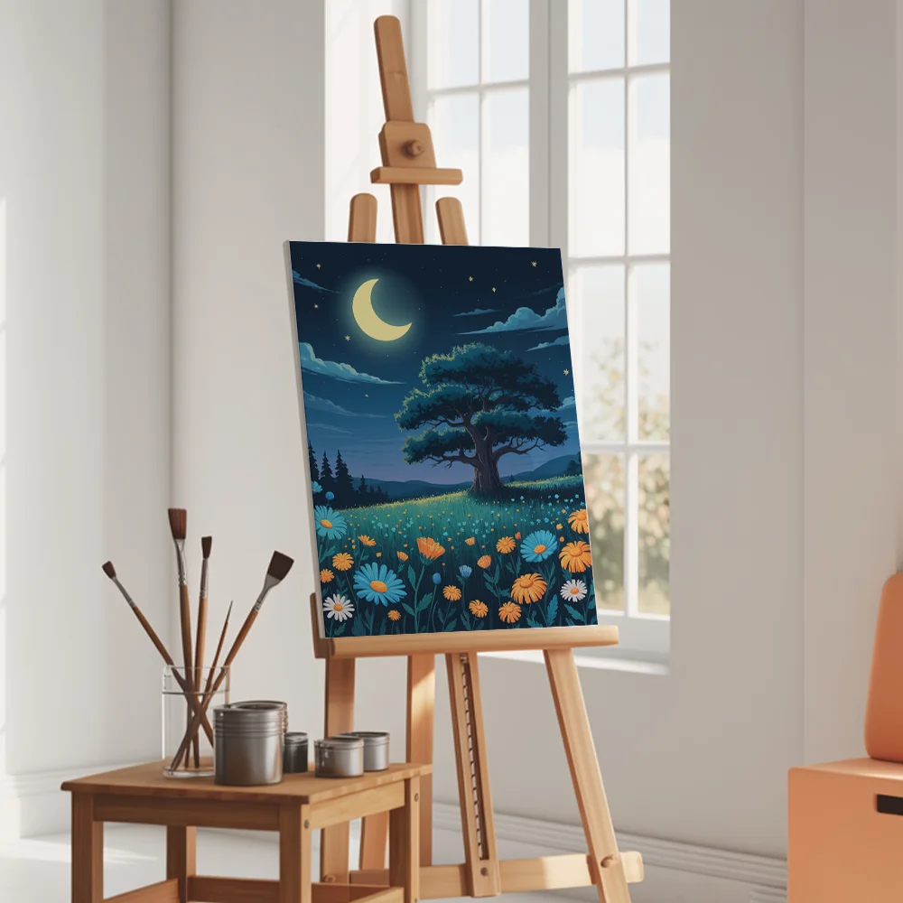 Pintar por Números – Noche encantada de luna y flores silvestres