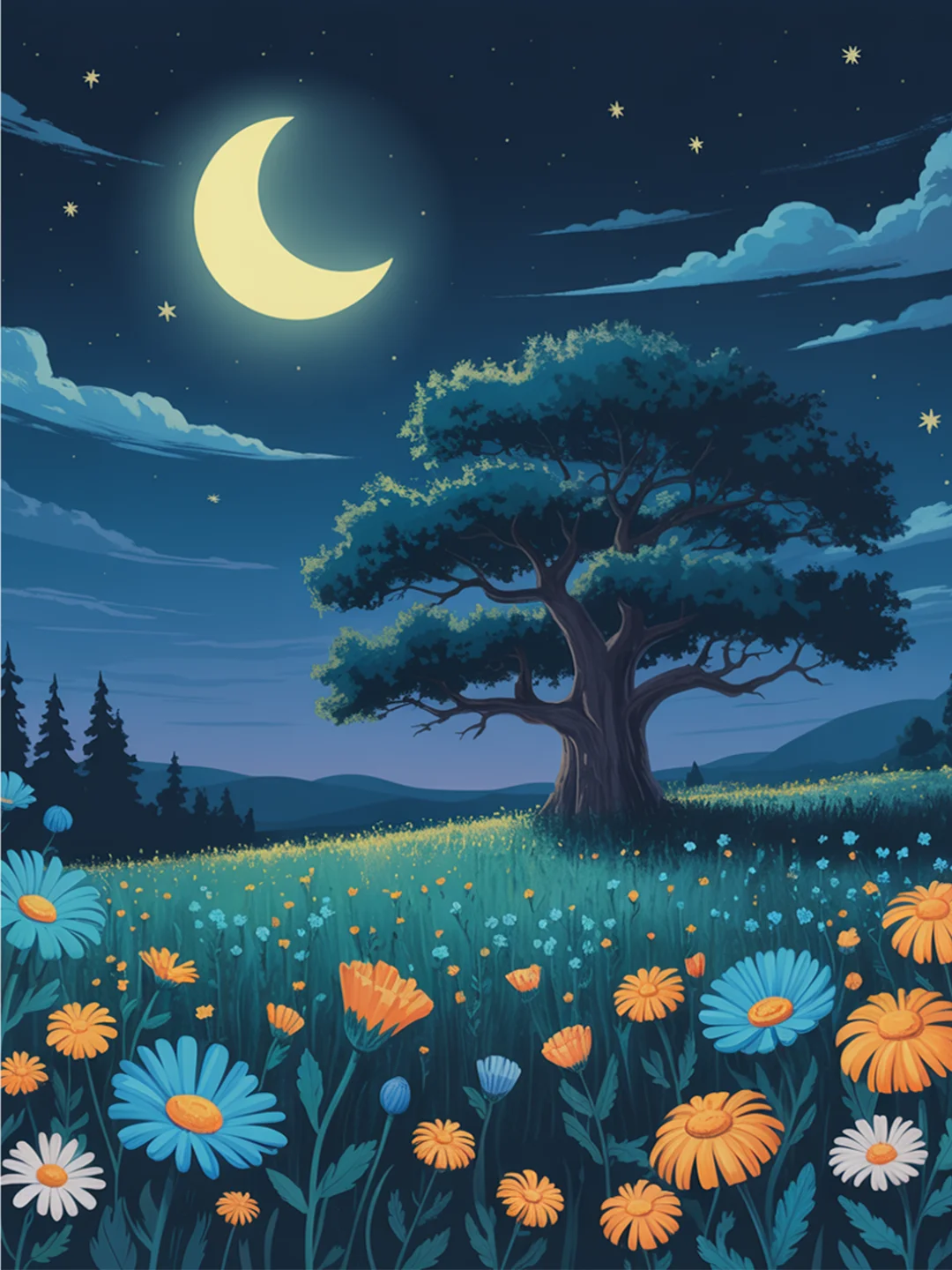- Pintar por Números – Noche encantada de luna y flores silvestres