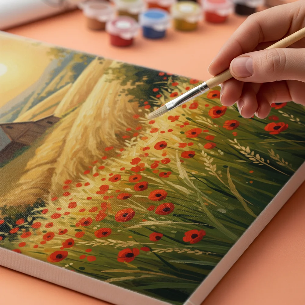 Los kits de pintura por números son muy fáciles de usar, por lo que puedes empezar a crear desde el primer momento. Antes de empezar a pintar, asegúrate de que el lienzo está plano y sin arrugas. Al planchar el lienzo, es más fácil pintar los cuadros y aplicar la pintura con mayor precisión. El resto es muy sencillo, poner música, encender una serie y ¡a pintar! Se recomienda rellenar primero todos los cuadrados de un color por completo, y en cuanto se termine un color, continuar con los siguientes. De este modo, no tendrás que lavar las brochas tan a menudo y obtendrás los mejores resultados. ¿Has terminado tu pintura? A continuación, debes dejar que se seque durante al menos un día para evitar las manchas y conseguir el mejor resultado. Una vez que la pintura se haya secado, puedes colocarla donde quieras.