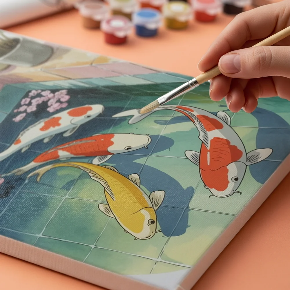 Pintar por Números – Peces koi nadando en una bañera