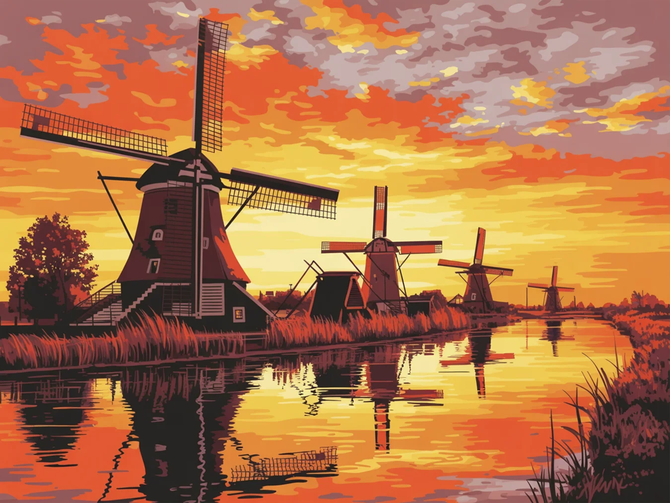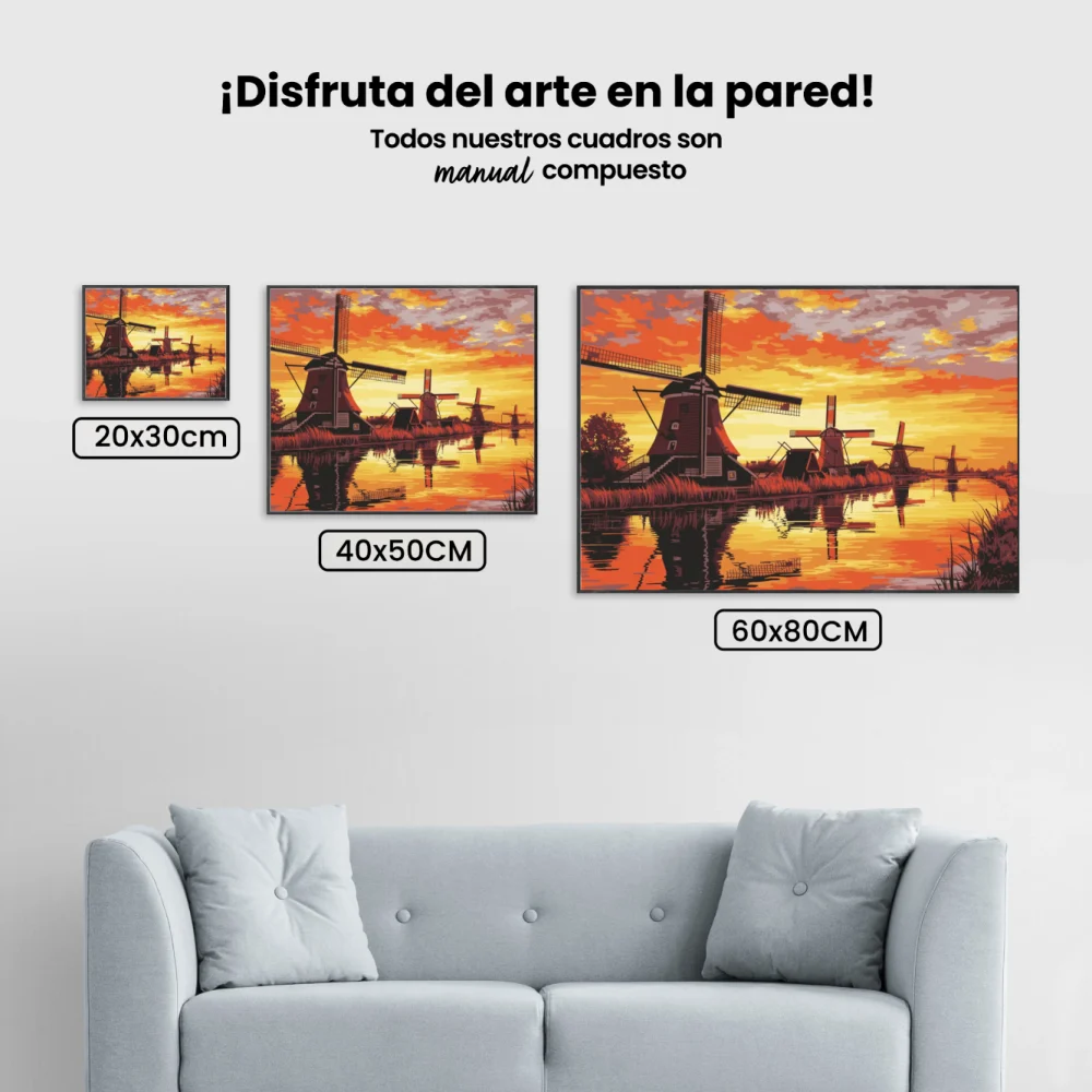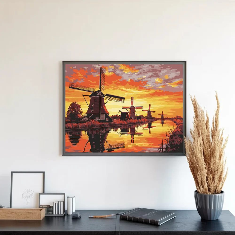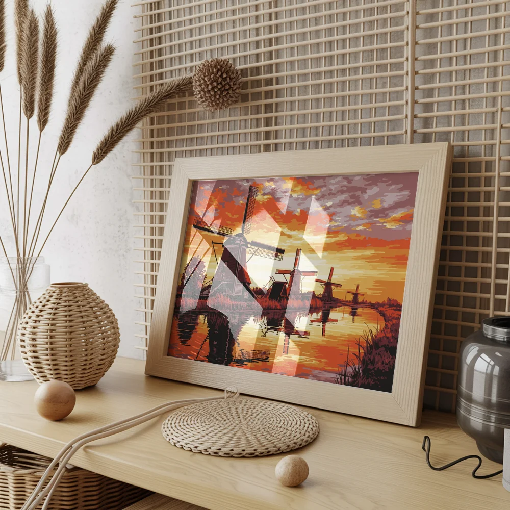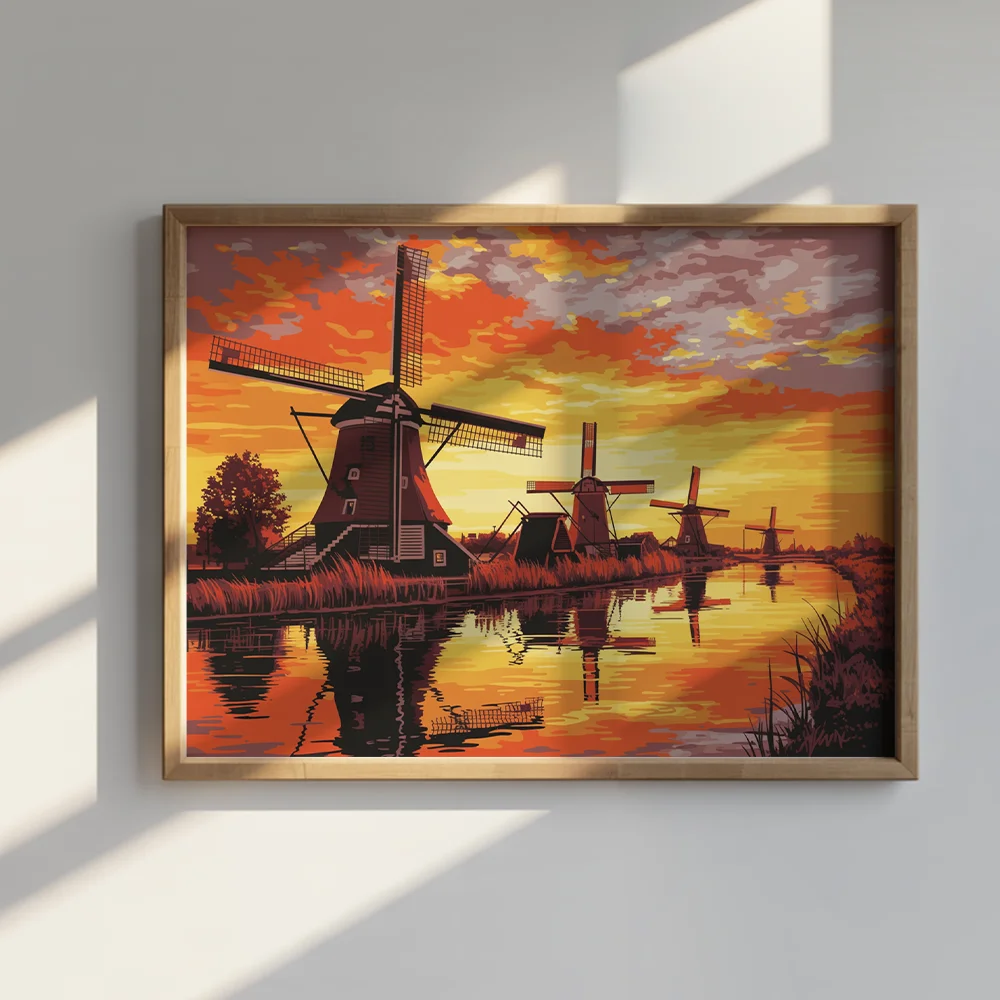 Pintar por Números – Puesta de sol en los molinos de Kinderdijk