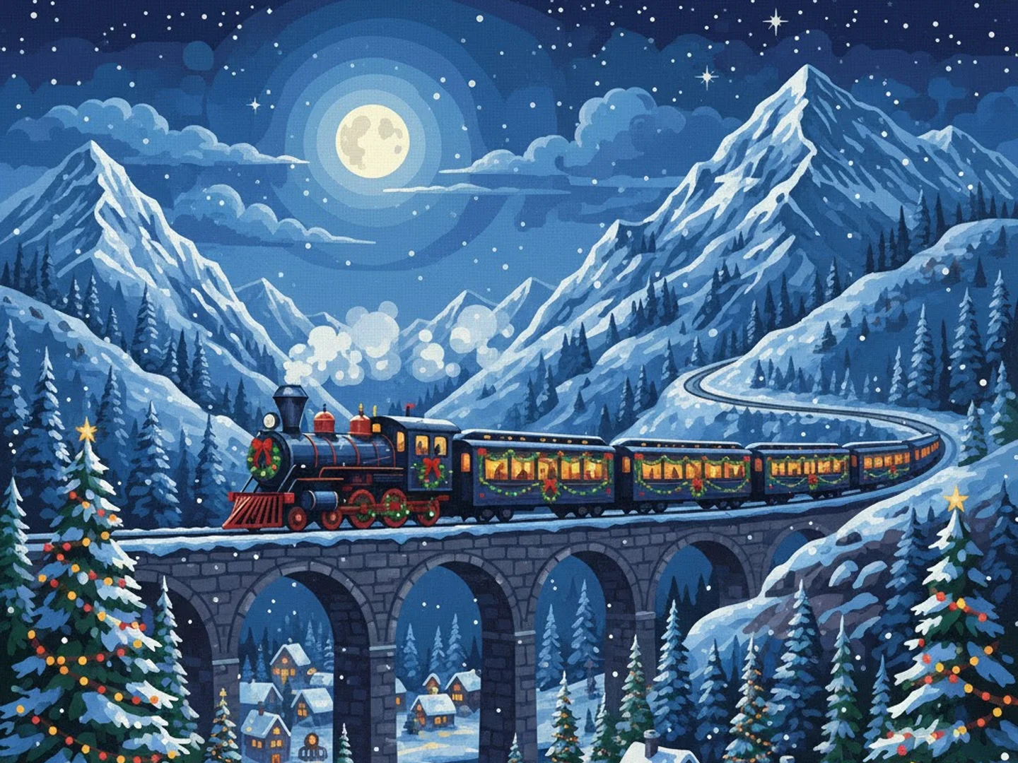 Pintar por Números – Tren Navideño a Través de las Montañas