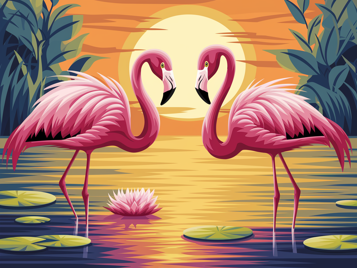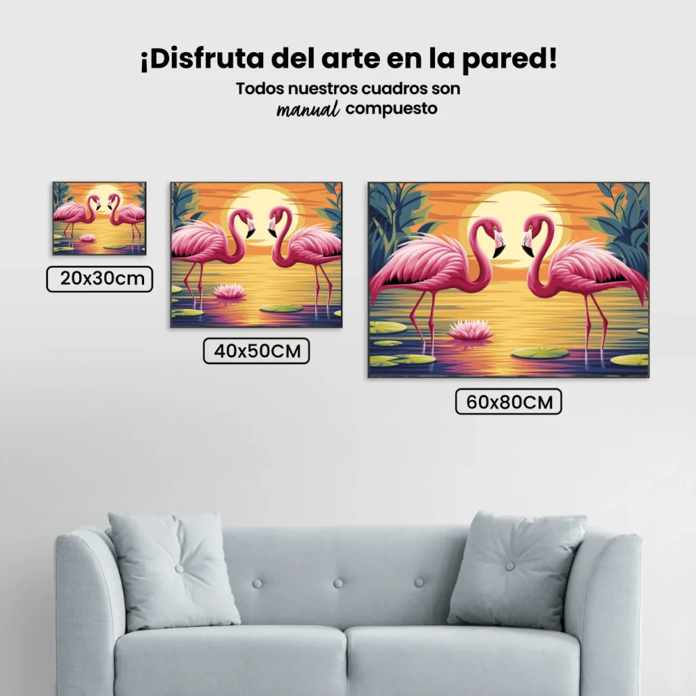 Pintar por Números – Vibrantes flamencos vadeando un estanque