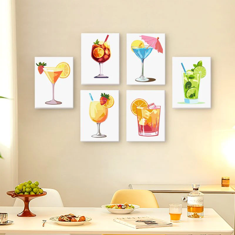 Pintura sobre números – 6 mini pinturas | Conjunto de cócteles de verano