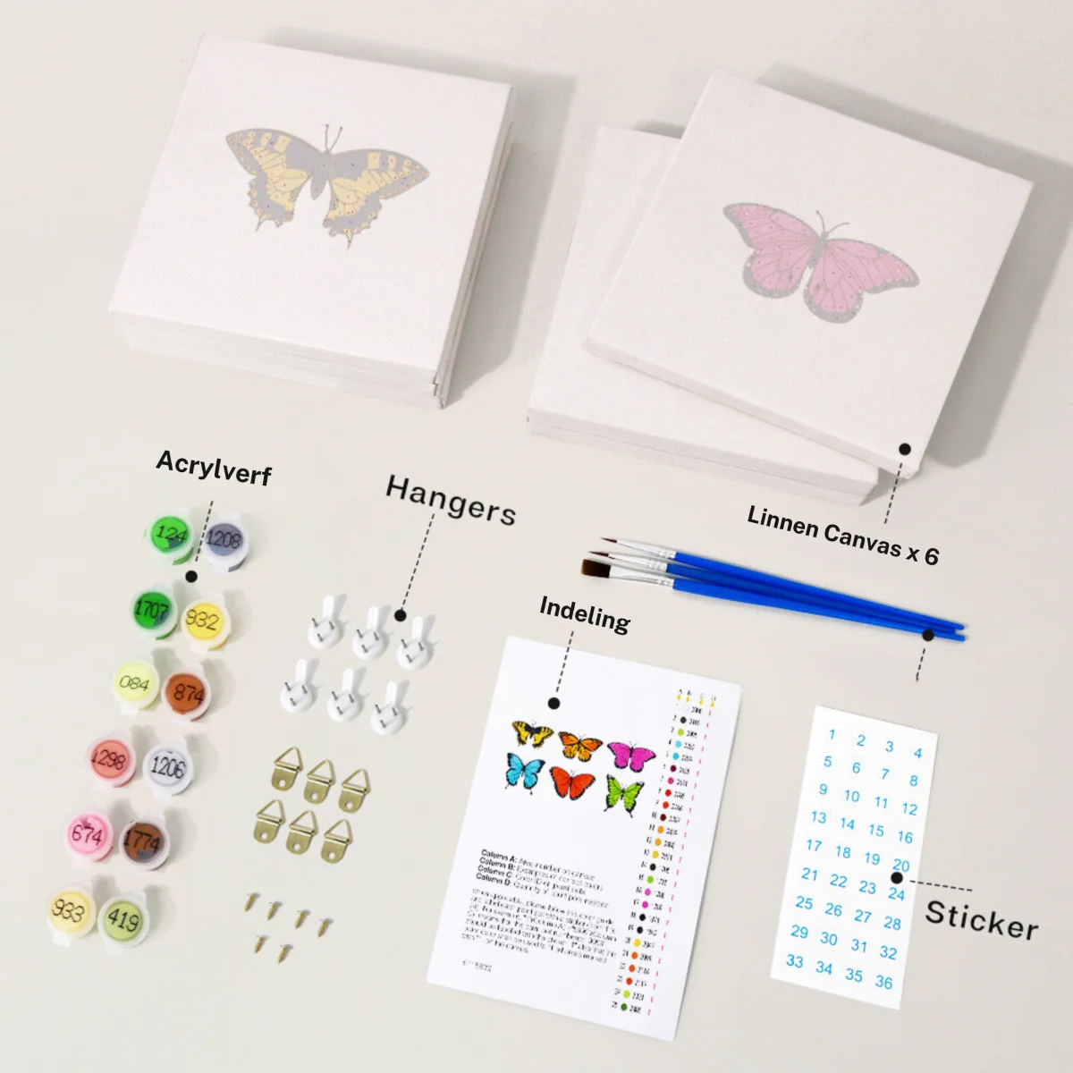 Pintar por números – 6 mini pinturas | conjunto de mariposas