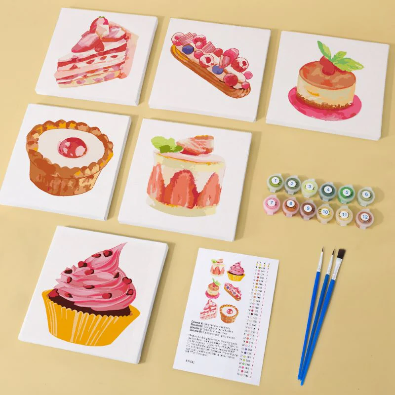 Pintar por números – 6 mini pinturas | Conjunto de pasteles