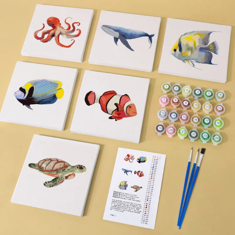 Pintar por números – 6 mini pinturas | Conjunto de peces